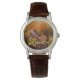 I like the illustrative watch with the lady on it. It is a great reminder that I am blessed and it has a very sturdy leather band. The colors are true and vibrant. Love the color of the Leather also. Very nice.