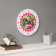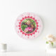 Clock design with personalized option of your own photograph inside peachy colour hearts circle.