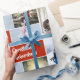 A cute Santa Mouse greets you. Add your photos and greetings for a personalized Chistmas wrapping paper. White, red and light blue the predominant colours. contact me at onlinetopbargain @gmail.com for help or further customizazion.