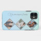 Create a unique custom phone case with a chic and stylish geometric pattern in grey over a gradual blue background. Personalize this case with your text and desired photo by uploading your photo in place of the sample shown in the design template.