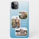 This light summer sky blue and white colored iPhone case is a perfect way to showcase your loved ones and express your personality. It has room for 3 photos of your family, pets, or friends, which you can easily upload and adjust. You can also customize it with a short text or name of your choice. This iPhone case is made of durable material that protects your phone from dust, scratches, wear and tear, and drops, while adding a touch of warmth and charm to your everyday look. This design is available in iPhone 6, 7, 8, 10 or X, XR, XS, 11, 12, 13, 14, and 15 Mini and Pro Max cellphone cases. Show off your style, look fashionable trendy, and feel stylish with a unique design on a mobile device accessory of your choice.