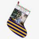 Custom Pic/Text Blue Gold W.V. Stripes and Lights Large Christmas Stocking