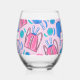 Custom Pickleball Paddles & Balls Pink Preppy Stemless Wine Glass