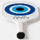 Custom pickleball racket with Evil Eye logo. Greek Turkish Blue Mati symbol of luck.