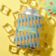 A pattern of yellow pineapples on pale blue, with custom label (name and special date)... cool for a beach-house decor or tropical parties