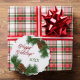 Contemporary Christmas holiday season ornament card with classic 'Happy Holidays' greeting wish on rustic green pinecone pine needles branches wreath motif on a crisp white background. With the option to customize or personalize with your family name and (limited) text of your choice.