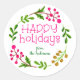 Custom Pink and White Happy Holidays Wreath Classic Round Sticker