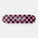 Skateboard with fun funky black and pink coloured racing flags check pattern design. Stylish original and cool cover for the trend-savvy and art-loving hip trendsetter, trendy look style motif lover.