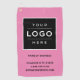 Company branded golf towel features your professional business logo and custom preferred business information - website, location, email, phone, etc. - text that can be personalized. Pink and black colours can be changed.