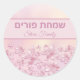 Custom Pink Flowers Butterflies Hebrew Happy Purim Classic Round Sticker
