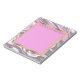 Personalized notepad with a pink, grey and white marble design with white and gold. Text, font, font size, colour, and placement are completely customizable.