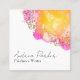 This modern square business card features a clean, minimalist design with a vibrant pink yellow ink flower in the background. The card can be easily customized with your name, title, contact details, and QR code, making it a great choice for professionals who want a simple yet eye-catching card. The design is sleek and modern, making it perfect for a range of industries and professions.