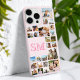Create your own personalized iPhone case featuring 25 of your favourite pictures in a custom photo collage grid alongside monogram initials in pink colour.