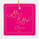Celebrate your first Christmas together with this beautiful Mr and Mrs ceramic ornament! Featuring "Mr & Mrs" in gorgeous gold calligraphy script on a striking hot pink background, and customizable with your photo, name and year, this ornament is a lovely keepsake and also makes a wonderful personalized gift for a newlywed couple.