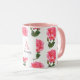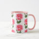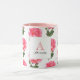 Custom Pink Roses Floral Art Monogram Square White Mug
