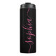 This sleek black Thermal Tumbler features a vibrant pink handwritten script, perfect for adding a touch of modern elegance to your hydration routine. This insulated Thermal Tumbler is highly personalizable, allowing you to replace the text with any name to create a unique accessory. Whether for the gym or the office, this durable Thermal Tumbler keeps your drinks at the ideal temperature while showcasing your personal style.