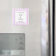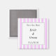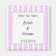 A custom Save the Date magnet with pink stripes in light pink, dark pink and white. Click Customize It to change fonts, sizing, background colours and more, even save your design for later.