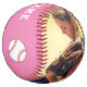 Custom Pink Team Player Name Number Photo Softball. Personalize it with player's photo, team name, player's name, player's number and year. Great keepsake to remember your favourite sport. This personalized softball is a perfect gift for softball player, teammates, coaches, friends and family