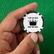 Custom poker chip golf ball markers with crown logo. Personalize with your own funny quote, name or saying. Make your own fun golfing gift for friends and family. Double sided design with custom background colour. Sports themed presents and party favours for men or women. Cool idea for Birthday, Holiday, boss day, reunion, Las Vegas wedding, company day, employees, corporate staff, club, office personnel, coach, players, dad and mom etc. Professional poker tokens with coloured edges. Easy to take with your equipment.