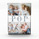 Create a sweet gift for a beloved grandfather with this four photo collage vertical acrylic block. "Pop" appears in the centre in soft blue lettering, with your custom message and grandchildren's names overlaid.