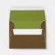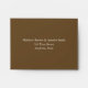 Use this custom envelope in place of the generic white envelopes that come standard with all of the cards and invitations in the Floral Vines Wedding Collection. This brown envelope features a green interior and a pre-printed return address on the front. You can easily customize the address on the product order page. The default size is 5 3/4" W x 4 3/8 H (A2) and fits the small greeting cards and invitations. You can order a different size by selecting "customize it" and "Choose your paper type and colour". A7 fits 5x7 invitations and cards. A6 is for the small invitation, but will also fit the small greeting card (note card). A2 is for the small greeting card (note card), but will also fit the small invitation. We also offer this envelope design without the printed address if you would rather write your own or use address labels.