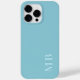 Contemporary light teal seafoam ocean blue coloured monogram cellphone case. With room to customize with a name monogram or initials of your choice. Beautiful, modern and cool cover for the trend-savvy and art-loving hip trendsetter, artsy motif lover who wants to protect their phone from dust and dirt, wear and tear. This design is available Apple iPhone 6, 7 and 8 Plus, 10 or X, XR, XS , 11, 12, 13 Mini, 14, 15 Plus and Pro Max cellphone cases. Show off your style, look fashionable trendy and feel stylish with a unique design on a mobile device accessory of your choice.