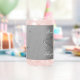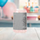 Custom print photo glass for casual beach wedding. Elegant photo of hearts drawn in the beach sand. Great for coastal wedding party near the sea or ocean water. Black and white image with script typography. Personalize with names of bride and groom. Part of matching collection set with traditional stationery and beautiful decor. Choose from can or wine glass.