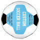 Custom Soccer Ball (round football) PALE BLUE BACKGROUND (change to any colour of the spectrum), for personalized custom print creation. Design your own soccerball. Upload your own photo, logo, name, text, pattern, flag, sports team colours. Make your own customizable soccer ball from a blank template available to personalize on any coloured background. Create your own custom printed soccer ball. Gift ideas - makes a great birthday or Christmas gift for a boy, a girl, or a man.