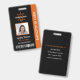 Stay organized and professional with this custom employee ID badge. Featuring a sleek black and orange design, this ID card includes a clear photo of the employee, their name, title, ID number, and a scannable barcode for easy access control. Ideal for any workplace, it adds a polished and cohesive look to your team’s uniforms.