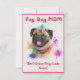 Celebrate your mom's love for pugs with our vibrant and artistic paper or digital card! This design showcases a colourful and playful image of a pug dog in a splash paint design, accompanied by the customisable text "Pug Dog mom" and "Best Crazy Dog Lady Ever!". It's the perfect gift for birthdays, Christmas, or Mother's Day, honouring the special bond between your mom and her furry friend. Let her show her love for pugs proudly with this unique and heartfelt gift.