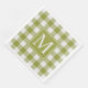 Farmhouse country style autumn pumpkin leaves green and off-white ivory gingham plaid pattern, with the option to customize or personalize with a family name monogram of your choice. Fun pretty fall coloured paper napkins for on your in fall colours decked table and get in the mood for fall season, the Thanksgiving holiday and Halloween.