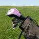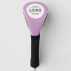 A professional custom branded golf head cover for your business features your logo design. Light purple background colour can be modified. Please contact the designer for assistance with personalizing this or other promotional items at kathleen@plushpaper.com