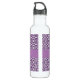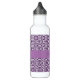 Refresh with this great customizable water bottle in a purple and white circular geometric pattern with lavender sash and custom name.