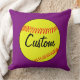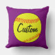 Custom Purple Softball Throw Pillow: Create your own customized softball throw pillow by typing any text in to the text box. These make great gifts for softball players, coaches and fans.