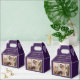 Elegant custom purple and gold wedding photo favour boxes. Easily personalize these wedding favour boxes with your wedding details. Our personalized wedding favour boxes are perfect for your classic purple and gold wedding party. These personalized thank you favour boxes can be customized to other occasions, such as bridal showers.