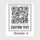 Vinyl decal with your custom QR code and two lines of custom text. Great for business to let their customers scan for more info, deals, online menu, to pay etc. The stickers are fade proof, water proof and scratch resistant. NOTE! YOU NEED TO REPLACE THE QR CODE TEMPLATE WITH YOUR OWN QR CODE!