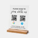 Modern and minimalist acrylic sign featuring a custom QR code for your business. Perfect for small businesses, offices, stores, studios, and restaurants. Use it for scan-to-pay, contactless payment, mobile checkout, or promotional purposes. The clean clear acrylic design ensures your branding looks professional, simple, and highly visible on tabletops, counters, and shop fronts.