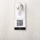 Custom qr code business simple minimalist white and black door hanger card. Add you text, photo, image, picture ; personalize the door hanger card with qr code , logo, website, message , information. For small business, companies, hotels,, promotion marketing tool for customers, visitors. Change text, and personalize with your business or personal information. Promotion item and supply for companies, stores, librairies, small organizations, shops, events