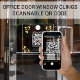 Modern minimalist style transparent logo QR code window clings provides a simple yet professional clean polished look. Ideal for displaying business hours, contact information, or promotional messages. Its designs is perfect for any businesses; be it retail stores, restaurants, and offices looking to enhance their branding. Customize QR code by adding URL link. With a quick scan, customer will engage directly with your company.