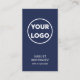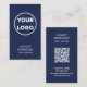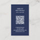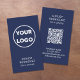 Look professional when you network with modern navy blue business cards featuring your logo, name, and title on the front, and a customizable QR code and your contact information on the back. Personalize the QR code with your website, portfolio, or landing page link and add your logo and text in the sidebar. Your logo can be any shape. Tap "Edit using Design Tool" for more options.