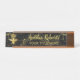 Custom, personalized, professional, modern, classy, stylish, elegant, business office rose gold classic black and faux gold script / typography, metal desk sign name plate.