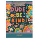 Stylish, rainbow, trendy, fun, uplifting kindness notebook will be a nice addition to your school day. Personalize with your name on the front. A subtle message to remind your classmates be kind! The playful Dude Be Kind message and unique and fun will be loved by students and teachers. For more of my daily inspirational artwork check out my Facebook page.