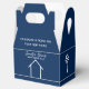 This modern realtor custom favour box is the perfect way to congratulate a homebuyer on their new house purchase. Congratulations on your new home or a different custom message for open house marketing.. These minimalist blue and white boxes feature a simple line drawing of a house for a simple, chic real estate agency business.