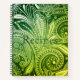 An African type flora print in Greens & Yellows grace the front and back cover of this custom recipe notebook. Emerald Green text on front reads "Recipes".