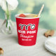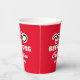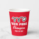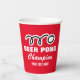 Custom red beer pong party cups with ping pong ball logo. Fun drinking game accessories. Add your own text, funny quote, name, year, colour etc. 9 ounce size disposable drinkware. Red or custom colour paper drink cups.