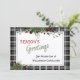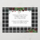 Unique, classic, trendy, pretty and decorative corporate Holiday card. Cute Happy Holidays greeting text and room to customize or personalize with a message of your choice on the rear of the card. Framed by Burgundy wine red berries and dark green foliage wreath bouquets on a classy black and white plaid tartan gingham pattern background.