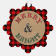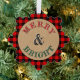 Unique, classic, cute, and decorative Christmas holiday ornament card with a classic red and black Buffalo check pattern on a brown kraft paper-looking background. With the option to customize or personalize your family name, year date, and text of your of your choice.