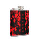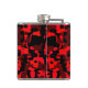 Personalized flask with red and black camo pattern and custom name on black background. Can be personalized by adding your name or other text and by changing the font style, font size and font colour.