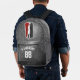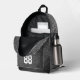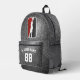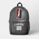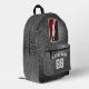 Show your love for the game with this customizable basketball backpack featuring bold black and red tones against a faux glitter background. The design centres around a dynamic silhouette of a basketball player going in for a layup, housed in a stylized cartouche shape. Add your name and jersey number for a personalized touch that’s perfect for players, fans, and coaches alike. Whether for game day, team banquets, or fan gear with flair, this school book bag is a slam dunk for basketball lovers.