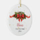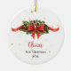 Mark a special first Christmas with this custom red bow ornament, featuring a classic ribbon design, festive charm, and your personalized name and year. Perfect for baby’s first Christmas, a couple’s first holiday together, or as an elegant family keepsake, this ornament adds a timeless touch to any tree. A heartfelt gift to remember the most magical "first" of all.